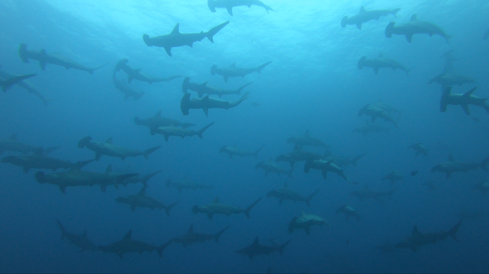 This dramatic difference likely reflects the seasonal migration of pregnant females. During the cold season months, large numbers of female hammerheads aggregate around Darwin and Wolf when cooler waters and increased productivity likely support higher prey availability, turning these islands into a stronghold for feeding, swimming, and visiting cleaning stations. This provides the energy reserves needed to undertake long-distance migrations of nearly 6,000 km during the warm season, as females travel to nursery areas to give birth to the next generation. Classified as Critically Endangered on the IUCN Red List of Endangered Species, my findings suggest that vast numbers of scalloped hammerheads likely migrate through a minefield of fishing vessels during the warm season, underscoring the Galápagos Islands as critical cold-season refuges for the future of the species in the region.