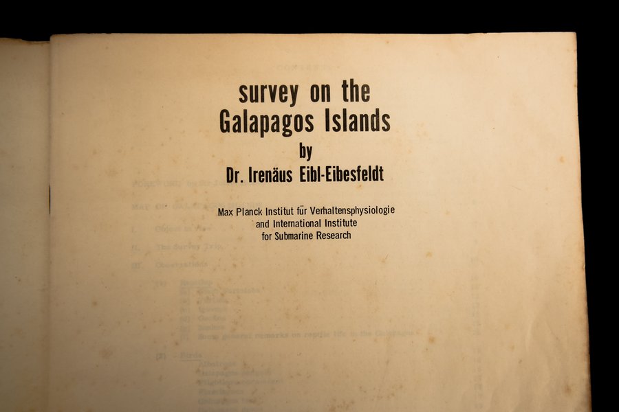Upon returning to Europe, Eibl-Eibesfeldt prepared a report for UNESCO, later published as Survey on the Galápagos Islands. In this document, he emphasized that “immediate measures must be taken to preserve the unique wildlife of Galápagos.” His assessment warned that the islands’ scientific value could be compromised unless a permanent scientific presence was established to study and monitor ecological changes.