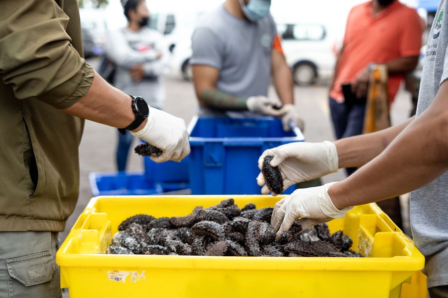 In Galápagos, wild brown sea cucumbers are legally harvested under a strictly regulated artisanal fishing system. This approach is guided by science and continuous monitoring, and fishing is only permitted when populations have recovered sufficiently.
