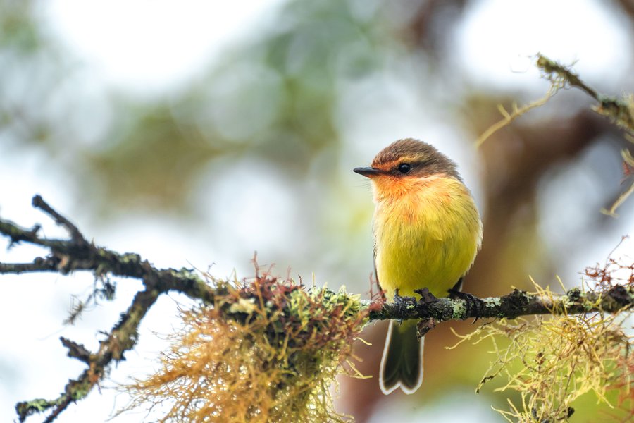 The Little Vermilion Flycatcher is a small bird endemic to Galápagos, easily recognized by the male’s bright red and black plumage. It is closely related to the widespread Vermilion Flycatcher (Pyrocephalus rubinus) found throughout the mainland Americas. In Galápagos, the species inhabits, arid and transition zones but with larger numbers on humid highland areas and is often associated with forests dominated by Scalesia trees. Historically, the Little Vermilion Flycatcher was recorded on at least twelve islands across the archipelago, but today is only found on ten, with severely declining populations on some islands. Like its mainland relative, it feeds primarily on insects, which it captures during short flights from perches. It can live up to the age of six years.