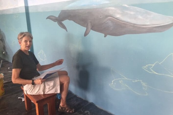 We opened the Charles Darwin Exhibition Hall a year ago, thanks to the support of generous donors. Here, visitors can see our unique exhibits, including the skeleton of a 13-meter Bryde´s whale and beautiful murals painted by Carlyn Iverson, an artist from the United States, and by local Galapagos artists. There is also lots of fascinating information about conservation and science projects taking place in the Galapagos.